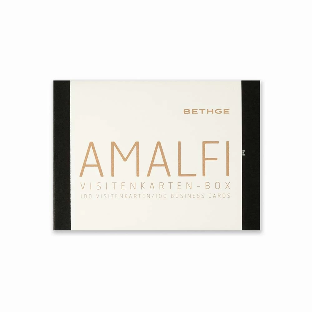 Business-card box with 100 blank business cards made of genuine, handmade deckle-edged paper (200 g/m²), size 10.0 × 7.0 cm. Supplied in a black card box that also makes a wonderful gift.