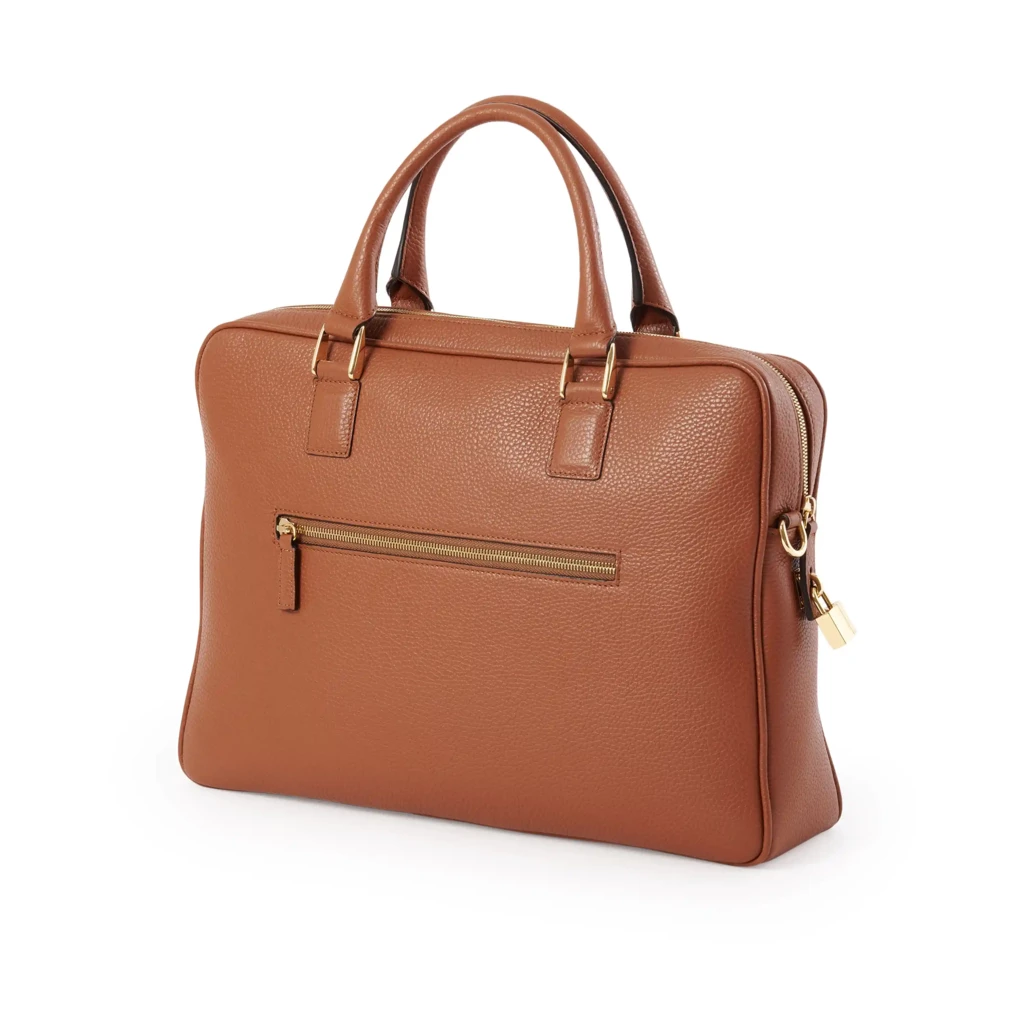 A small lock is included to keep contents secure from prying eyes. The leather pull on the main zip features a small slit which is simply placed over the eyelet before attaching the lock. When the lock is not in use, it can simply stay in the background, attached to the briefcase exterior by an integrated leather loop.