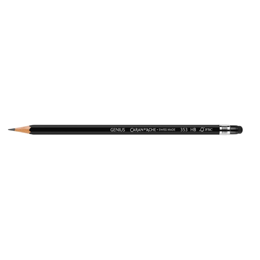 This premium-quality HB graphite pencil from Caran d'Ache also acts as a practical aid for a tablet or smartphone, thanks to its rubber attachment at the top. The pencil is made in Geneva from FSC™-certified wood. Length: 18.5 cm. Width: 8.5 mm.
