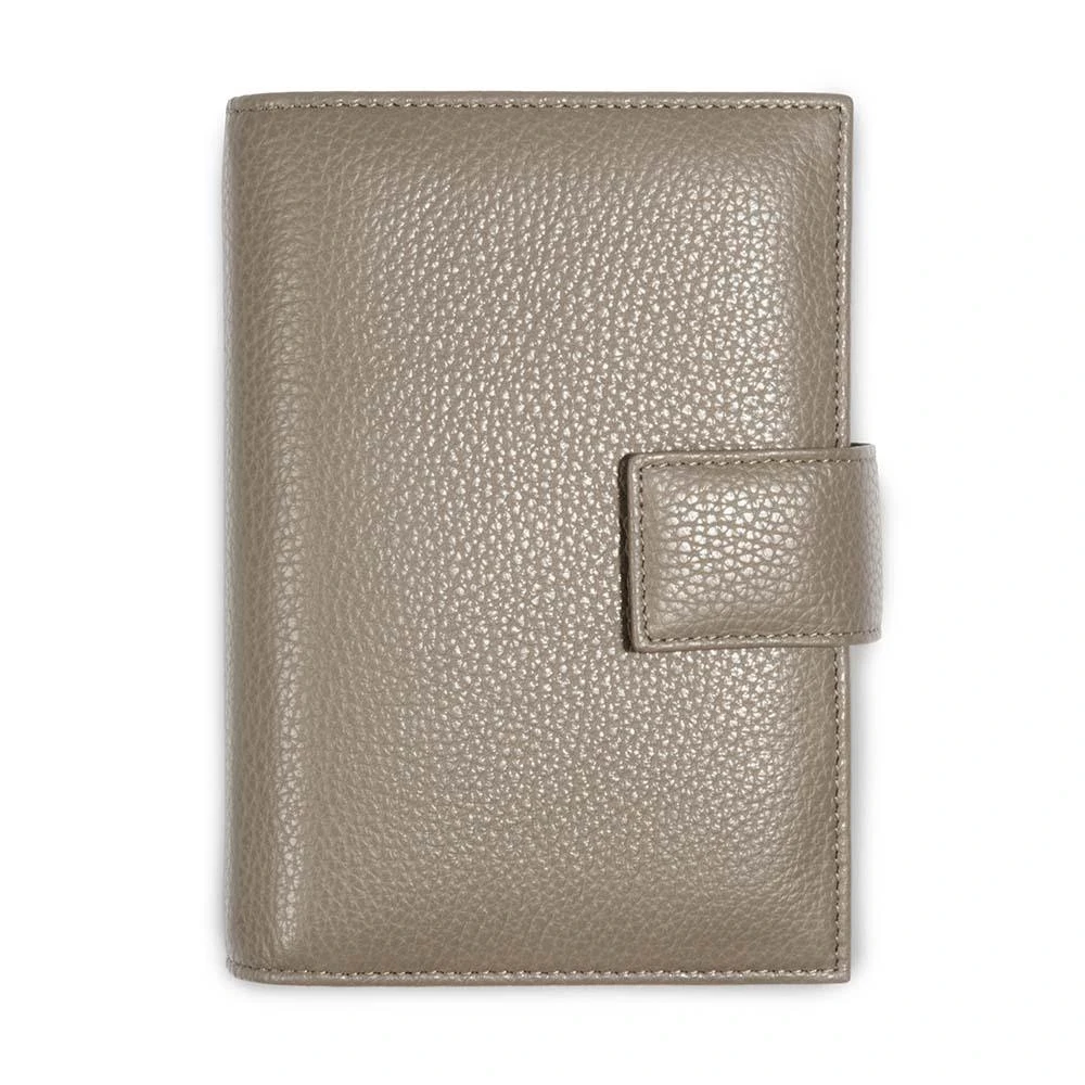 An extensive and versatile organisational aid, this luxury version boasts an exclusive cover in top-quality cowhide, which is not only extremely durable but also has a great feel. The inside cover has two larger slide-in pockets, six card slots for business or credit cards, a large, zipped compartment as well as a pen loop for medium-sized pens (approx. diameter 1 cm). The personal organiser is closed by means of a flap with press stud. It is handcrafted in an Italian leather goods workshop using traditional methods.