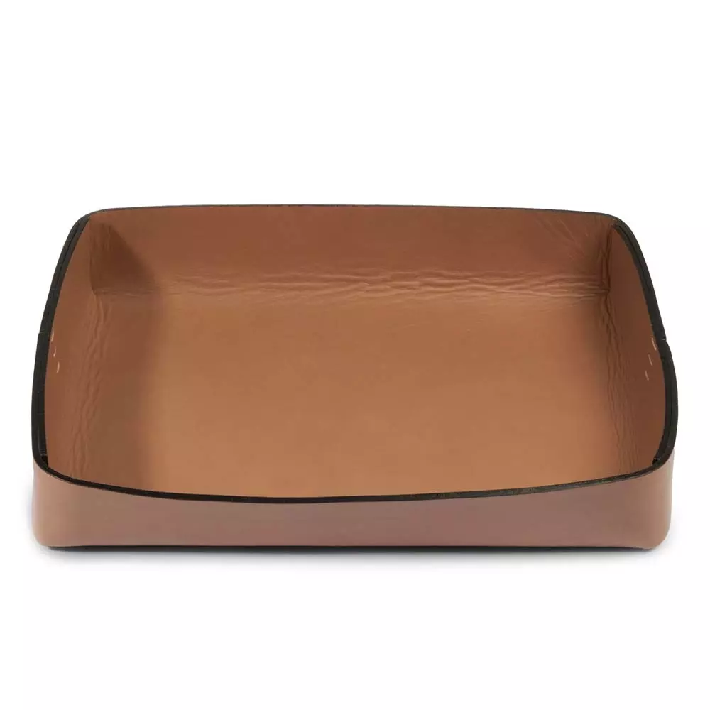 This leather tray, whether used on the desk at home, in the office or as a neat and tidy tray organiser on the bookshelf or sideboard, fits in with virtually all design tastes, thanks to its distinctive design language.