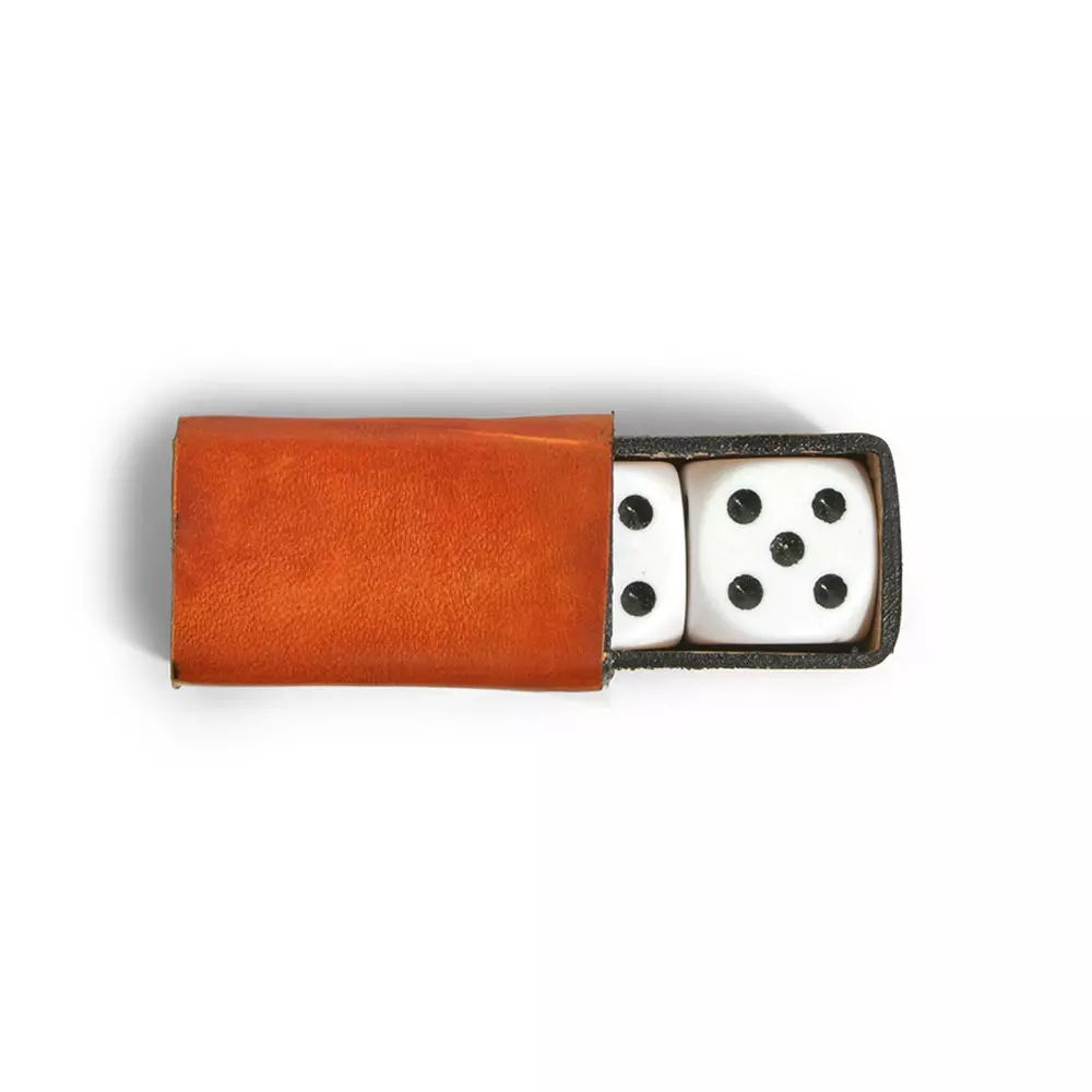 - 2 dice in a vegetable-tanned leather case