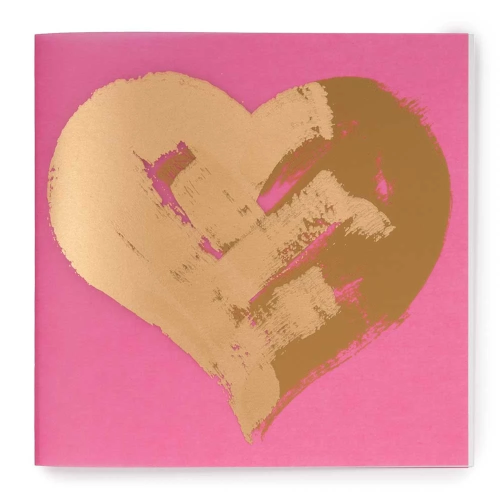 The “Barbie heart” greeting card comes directly from Bethge’s in-house creative studio. A large golden heart is hand printed onto delicate pink parchment paper. The heart motif has both a lighter and a darker shade of gold. The printed parchment paper is then used as an overlay for a white card with a white inside as well. So you can easily write inside in the color of your choice. A lined white envelope is included with the greeting card.