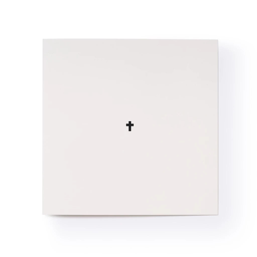 Elegant condolence card in a modern format with a discreet cross. Hand-printed in screen printing. With black envelope, unlined.