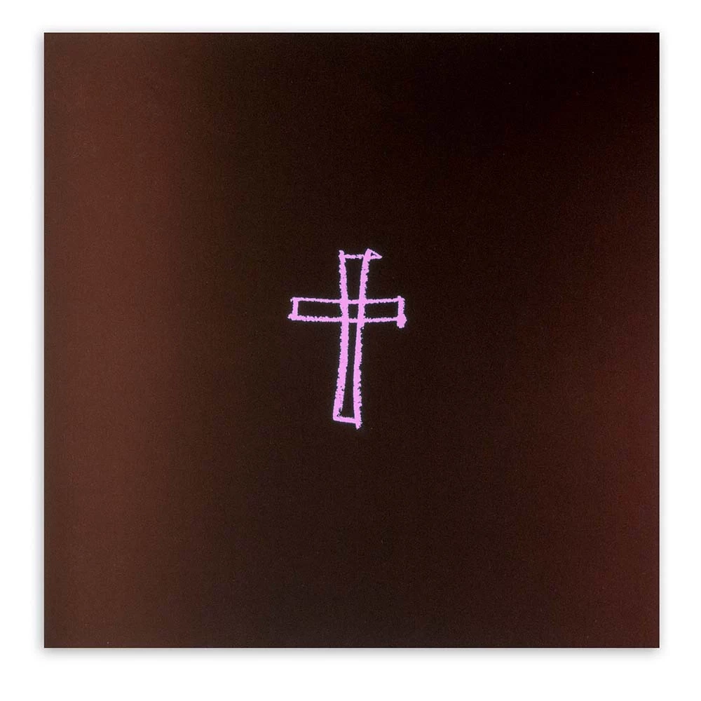 Greeting card for Communion and Confirmation on elegant Pure stock. Dark brown outside, white inside. A pink cross is printed by hand on the cover. Format 15.8 × 15.8 cm. With matching envelope.