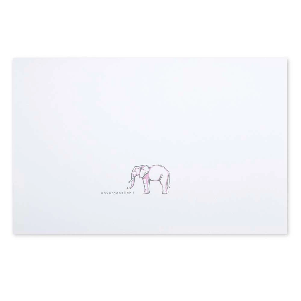 Forever unforgettable… Folded card with elephant motif. Hand printed in the screen-printing process. With matching envelope.