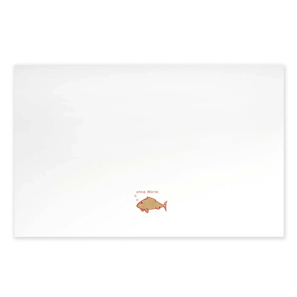 Even the fish is lost for words. Funny greeting card in a folded-style format with plenty of space for your own words. Hand printed in screen printing. Matching envelope with white silk lining.