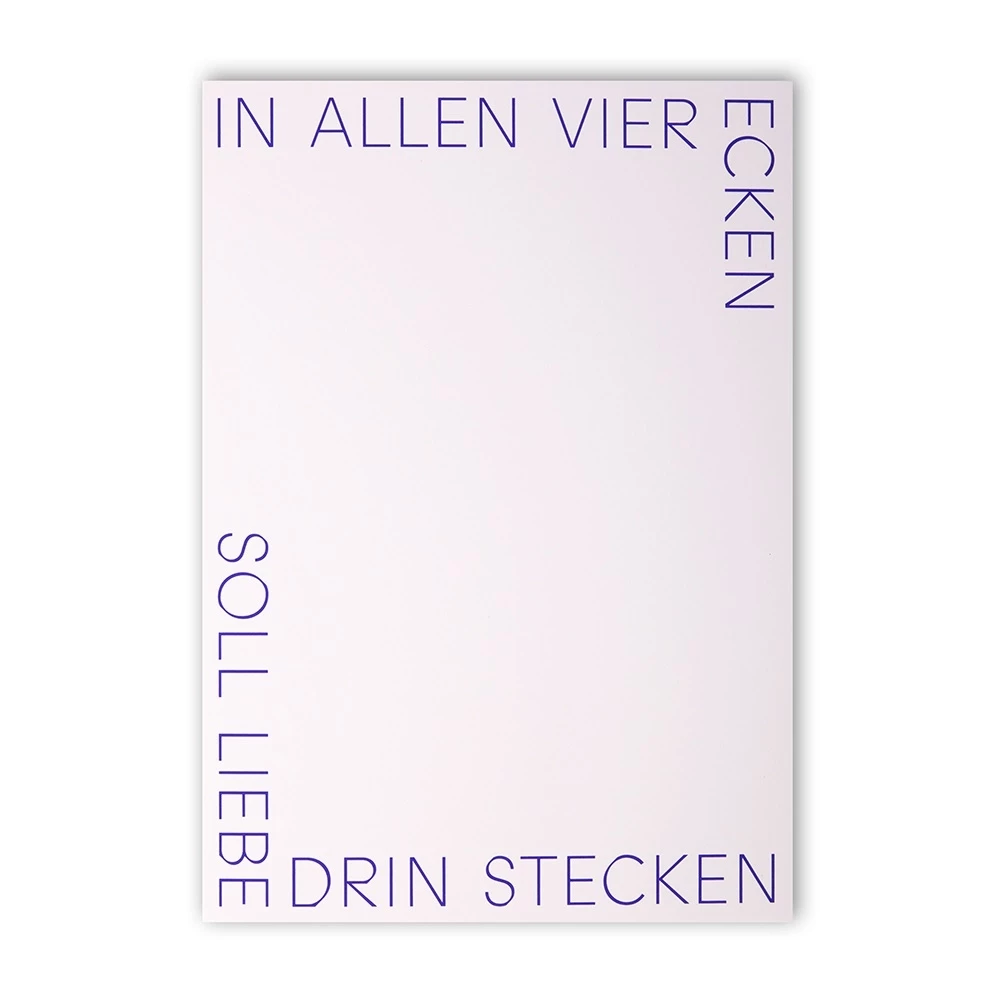 Ganz gemäß dem aufgedruckten Motto ist diese Karte …“ → Ende: „… denn: ‚In allen vier Ecken soll Liebe drin stecken