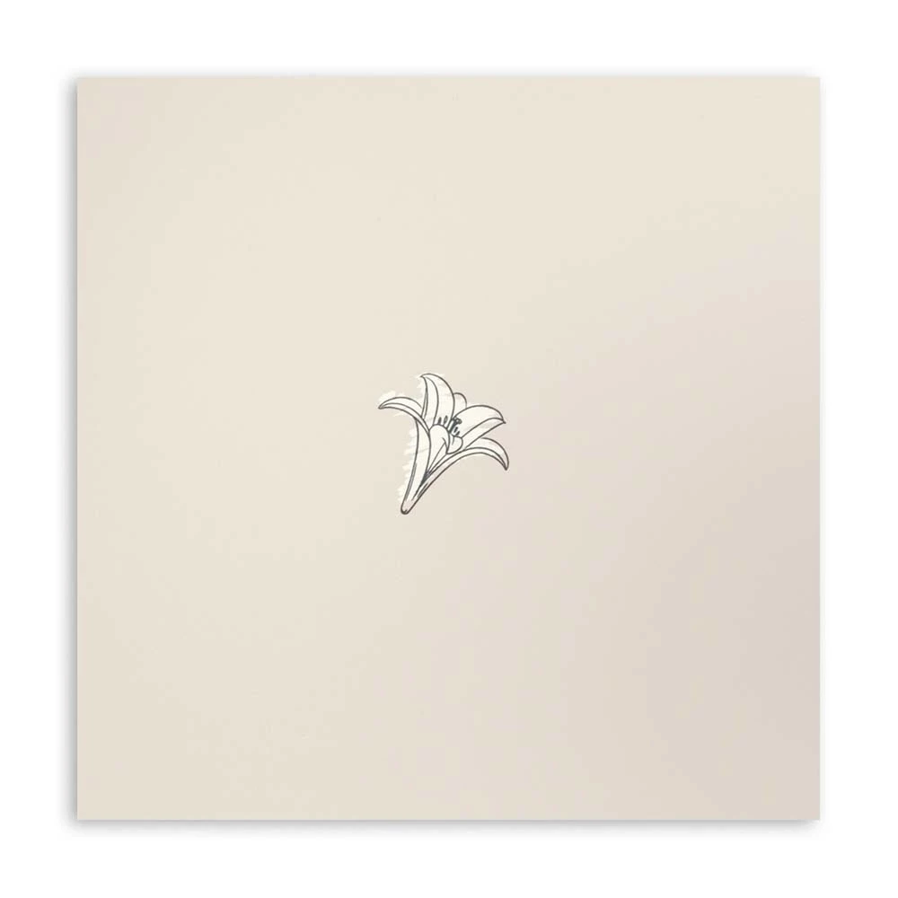 Floral elegance. Square folding card with a beautiful lily motif on Pure Sand paper. Hand-printed, with matching silk-lined envelope.