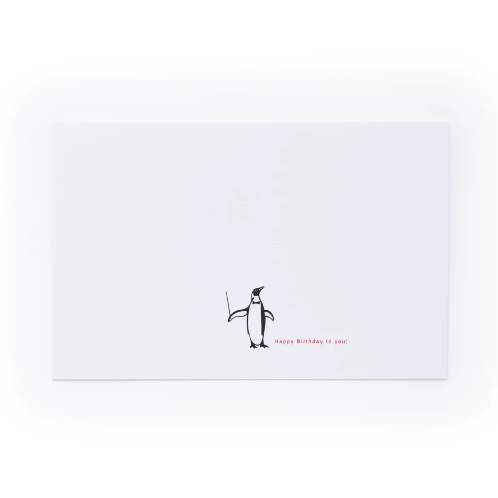 A birthday serenade. The little penguin, smartly dressed, makes a fine conductor. Folding card, hand-printed in screen printing. Matching envelope with silk lining.