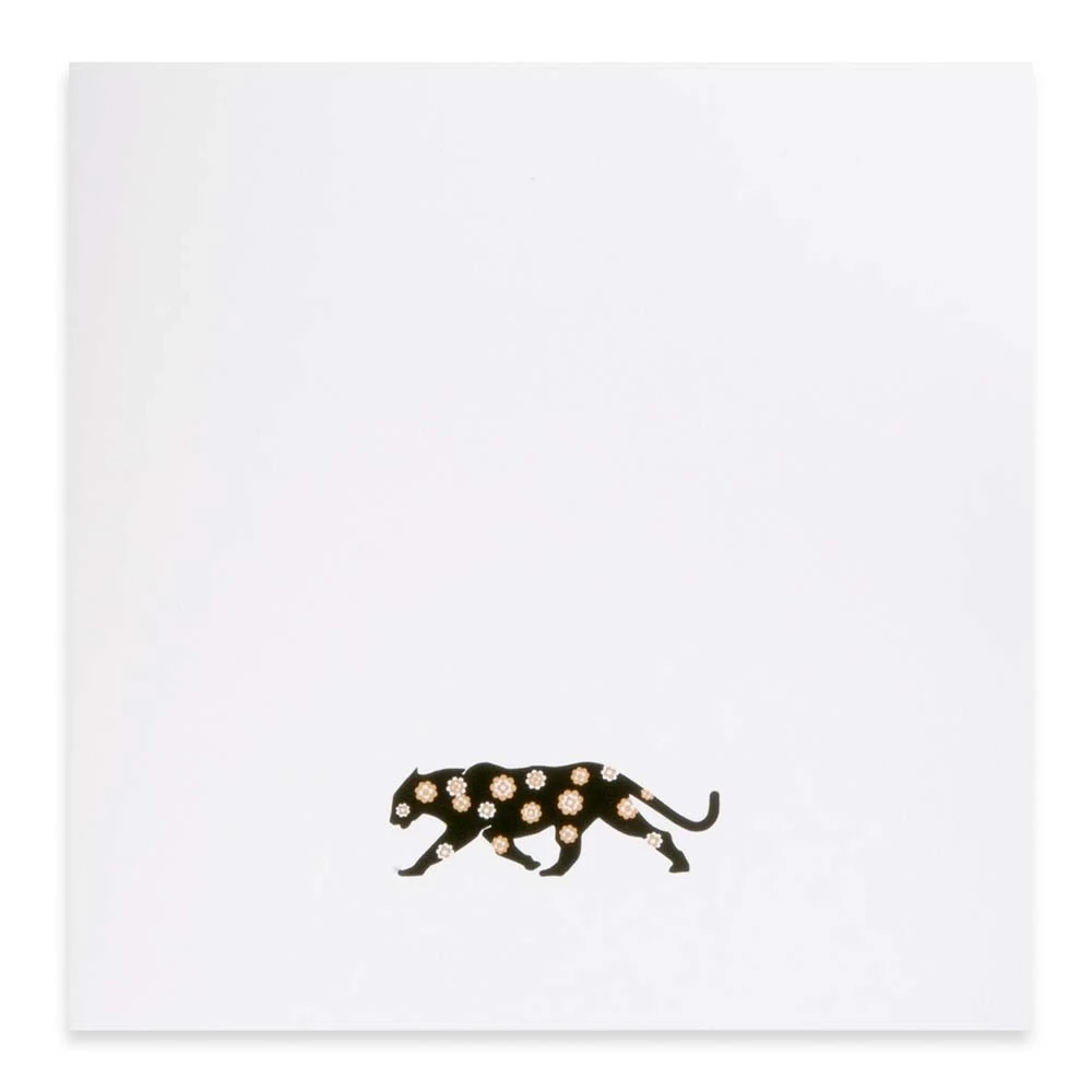 Black panther, beautifully adorned. Snow-white folding card in a square style with an elegant panther motif. Hand-printed using the screen-printing process. Matching envelope with silk lining.