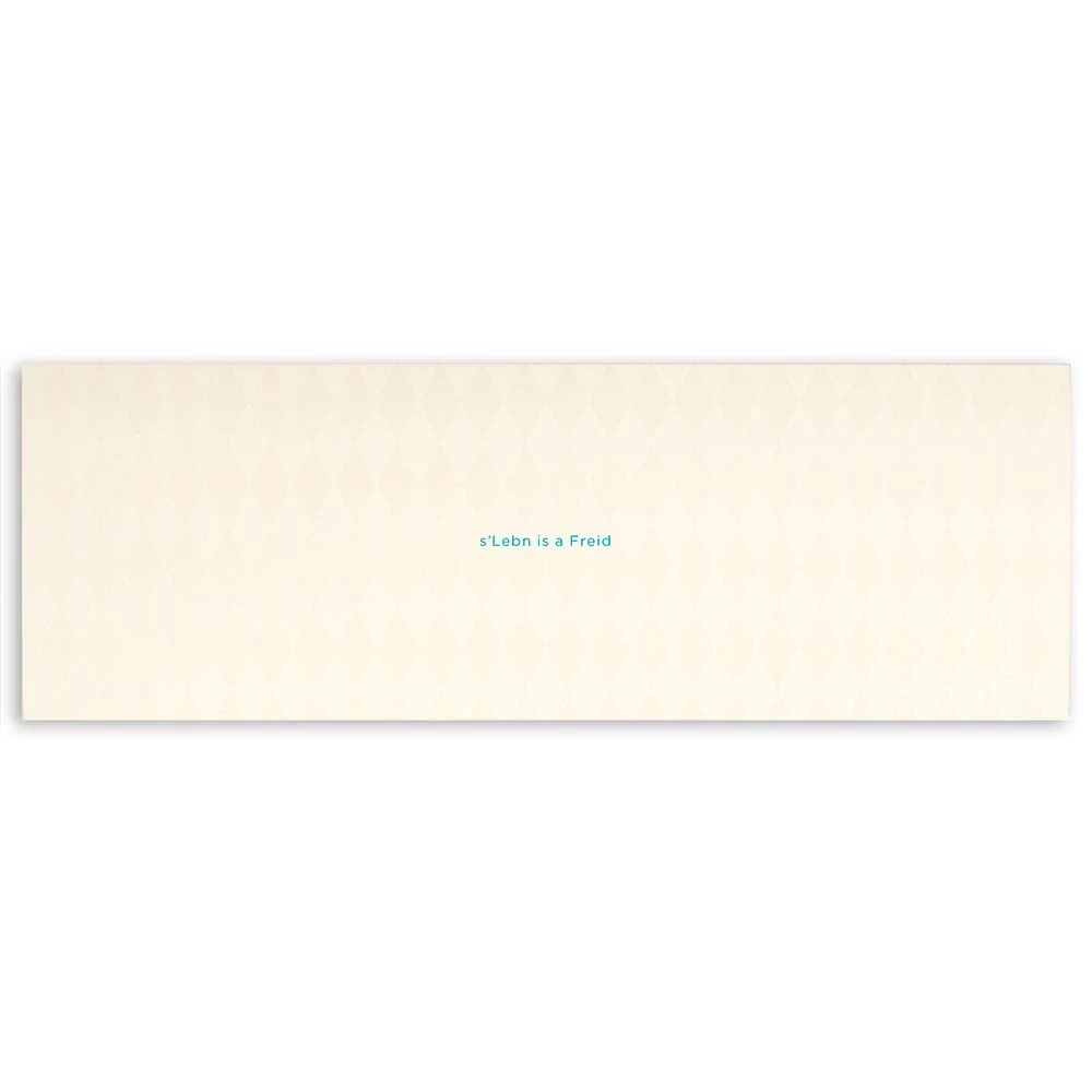 The “s’Lebn is a Freid” card is ideal as a private or corporate greeting for any positive occasion.