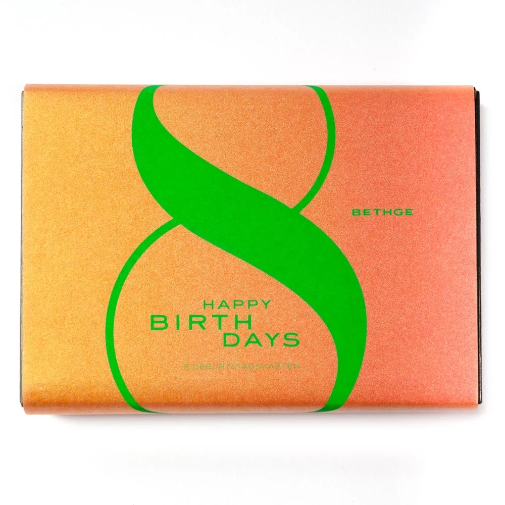 The “Happy Birthdays” greeting card set includes eight popular birthday greeting cards from our range. Whether as a stock or an exclusive gift idea, the fine papers used with colorful printing bring joy to the recipient and are the perfect carrier for your congratulations and kind words. All cards are hand printed in the screen-printing process in the Bethge studio. The Diplomat-format greeting cards are supplied with perfectly matching envelopes in the 18.0 x 12.0 cm format in a high-quality black card box.