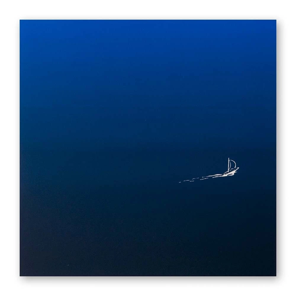 Elaborately hand-printed greeting card from Bethge’s screen-printing studio. Two highly pigmented blues are printed as a gradient, creating incredible depth.
