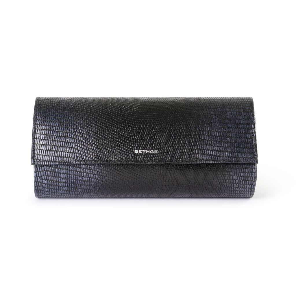The Bethge watch roll is a discreet place for favorite pieces you like to keep within sight—yet stored securely. Crafted from the finest cowhide leather, its clean, cylindrical shape blends seamlessly into any interior and fits easily into luggage. The signature Blue Moon embossing, with its deep black-to-blue gradient, adds texture and depth to the surface without being overpowering. A subtle silver Bethge embossing provides a refined accent. Inside, the roll is fully lined with soft velour. Three removable watch cushions accommodate wristwatches of different sizes and ensure they rest safely and gently—whether on a shelf at home or in a weekender while traveling. Thanks to the clear layout, each watch remains easy to access while staying perfectly protected.