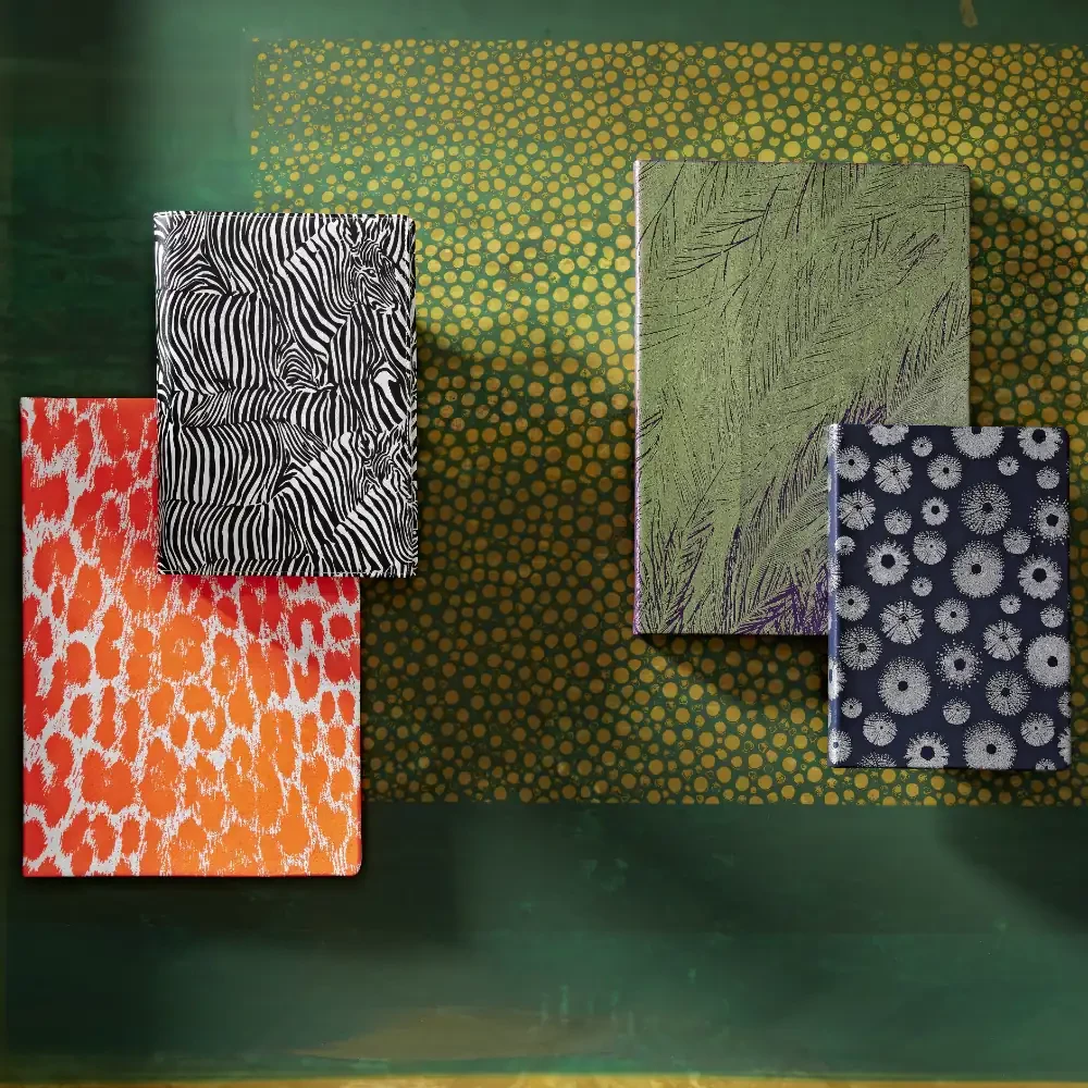 - Soft cover notebook with a leather cover made from Italian full-grain cowhideEmbellished with silkscreen-printed iconic nature designs