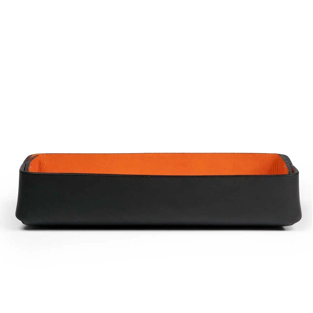 The minimalist design of this tray organiser for writing implements and other small items for a neat and tidy desk is crafted by hand from a single piece of double-layered full-grain leather (cowhide) in an Italian leather goods workshop. The leather is cut in several precise steps before being folded by hand and then stitched together. The clever technique used in creating this pen tray in an understated design has almost no seams, e.g. in the base. White stitches at both ends, which is also the tray’s namesake, add a visual contrast. This leather tray for writing implements, whether used on the desk at home, in the office or as a neat and tidy tray organiser on the bookshelf or sideboard, fits in with virtually all design tastes, thanks to its distinctive design language. The double-layered construction, including the option of using two different leather colours for the interior and exterior, creates a unique contrast. The leather, which is tanned in Italy using solely natural vegetable tannins, means that toxic chemicals are avoided. Why not look to combine a pencil pot, pen tray, desk top pad or mouse mat from the same series to achieve a coordinated look.