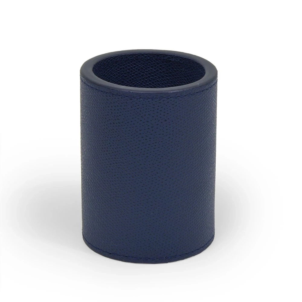 Round pen holder, leather, H 10 cm, D 7.5 cm, dark blue