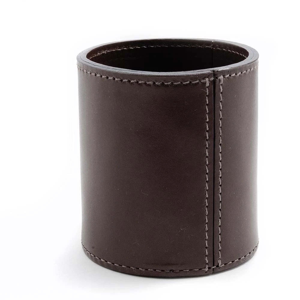 Round pen holder, leather, H 11 cm, D 8.5 cm, dark brown