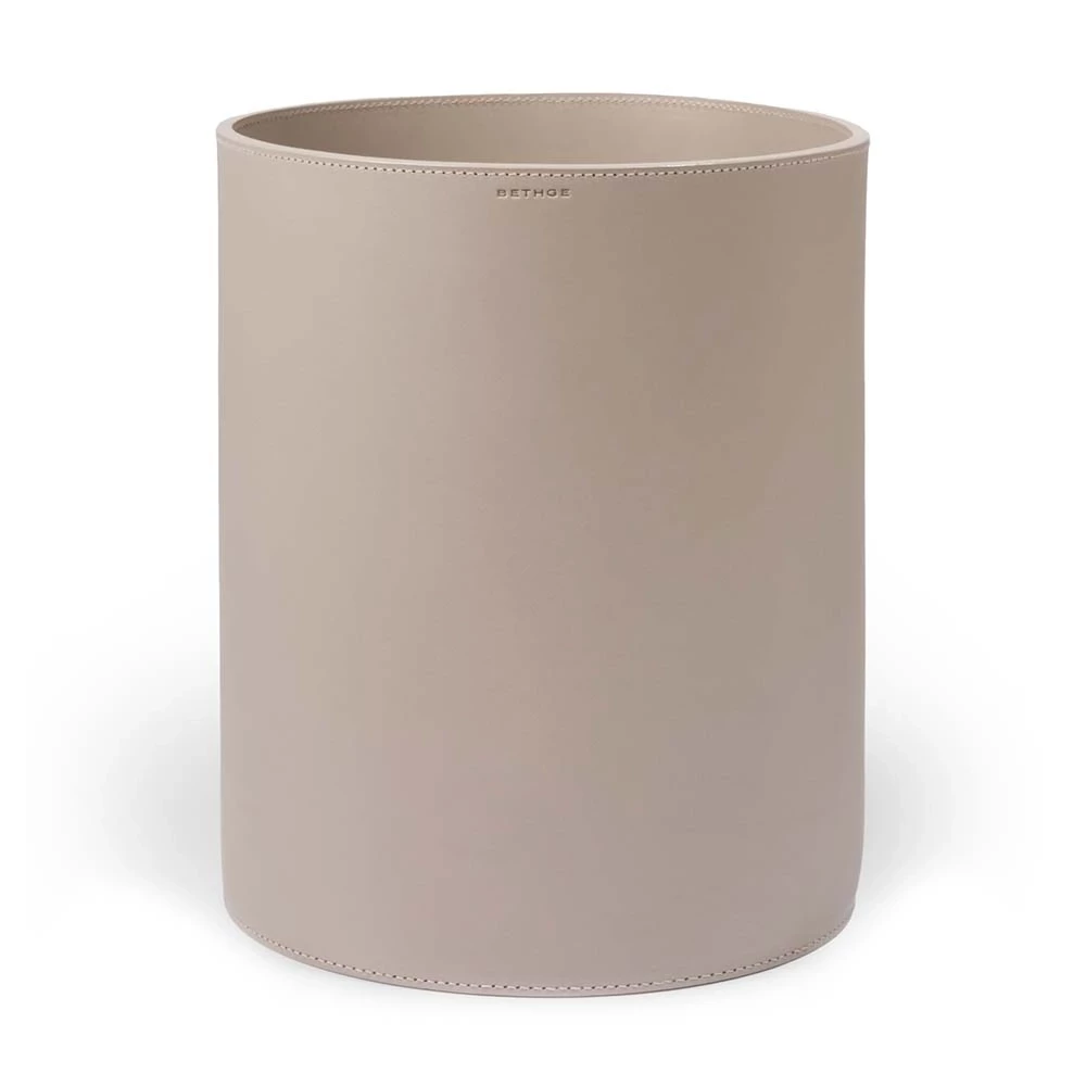 Round wastepaper bin, leather, H 30 cm, D 24 cm, taupe
