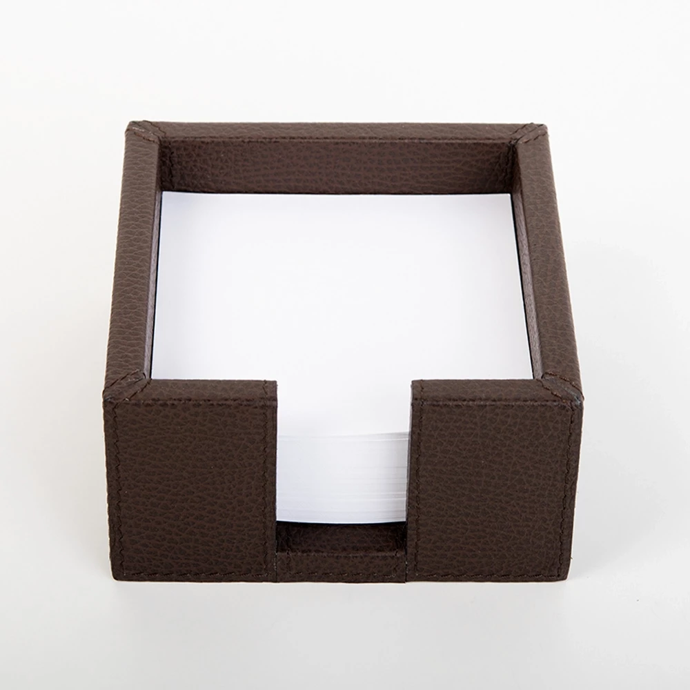 Square memo note box, leather with deer-grain look, mocha