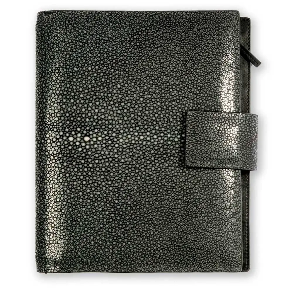 Daily planner with cover in buffed stingray leather featuring a 6-ring standard mechanism