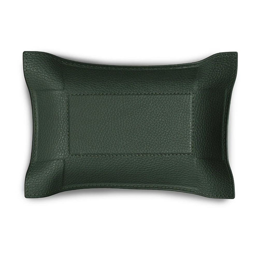 Valet tray rectangular, deer leather, 21 x 15 cm, dark green