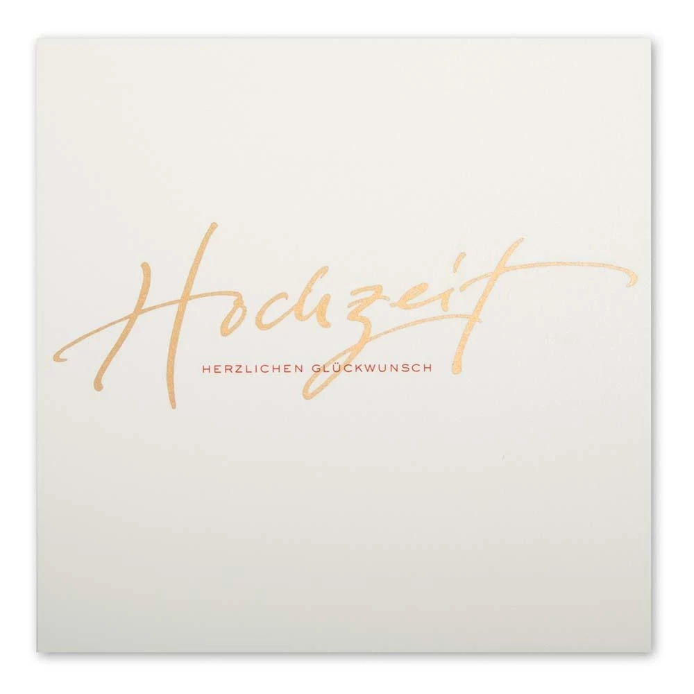 Beautifully written, warmly congratulated. Square folding card for a wedding. Hand-printed in the screen-printing process. With matching lined envelope.