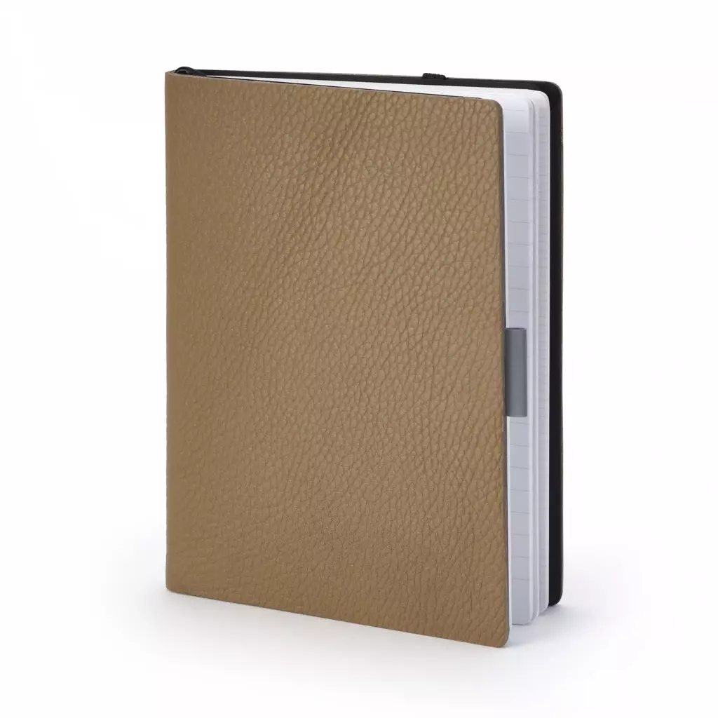 The cover, in top-quality calf leather, stems from Europe and is tanned according to stringent environmental regulations. The leather is then handcrafted in Switzerland, and each cover is unique.