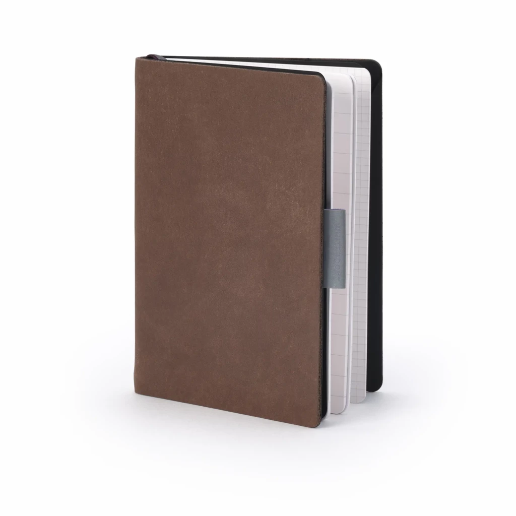 This version of the Whitebook boasts a compact size, with the notebook measuring just 9.8x13.8 cm. This Whitebook can hold up to three notebooks, an ideal amount. Depending on usage and lifestyle, the notebooks can be simply replaced when full. If two notebooks are used at the same time, the integrated bookmark ribbons are helpful for better orientation. Alongside the bookmarks, the Whitebook contains a pen loop, a card slot as well as an elastic band to keep the Whitebook closed. A modular calendar is also available for this compact Whitebook. If required, one of the notebooks is simply replaced with the calendar.
